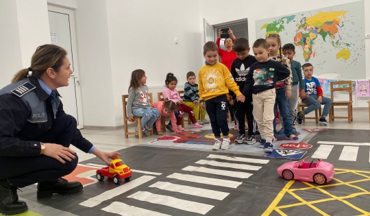 Poliţiştii le-au prezentat copiilor regulile de circulaţie şi importanţa abordării unui comportament corect ca pietoni, pentru prevenirea implicării acestora în evenimente rutiere.