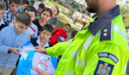 Cu această ocazie, polițiștii le-au prezentat copiilor regulile de circulație și importanța abordării unui comportament corect ca pietoni, pentru prevenirea implicării acestora în evenimentele rutiere.