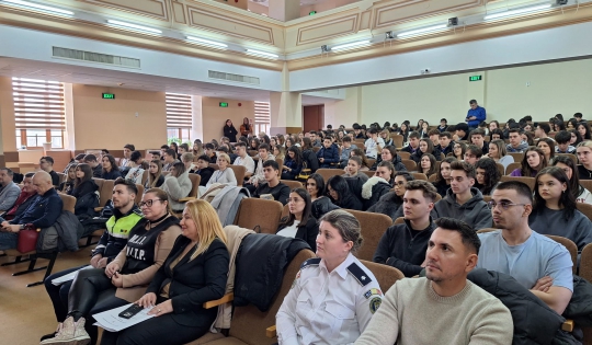 Activitatea organizată în Amfiteatrul Colegiului Național ”Elena Cuza” din Craiova, s-a bucurat de participarea a aproximativ 200 de liceeni și cadre didactice, obiectivul fiind reprezentat de creșterea gradului de informare al participanților în vederea reducerii vulnerabilitățiilor în mediul online.