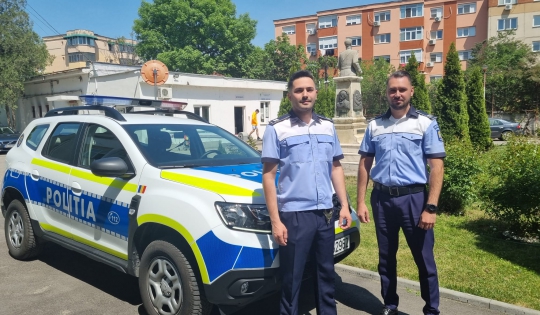 Colegii nostri, Ilinca Gheorghe şi Genoiu Robert, poliţişti în cadrul Biroului Rutier Craiova, în timp ce se aflau în executarea atribuţiilor de serviciu, au observat pe strada Calea Bucuresti, din Craiova, un bărbat vizibil speriat, cu un copil în braţe.