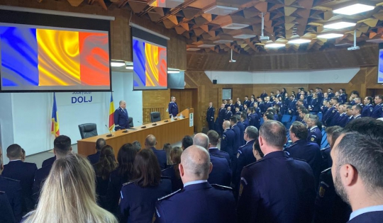 Astăzi, 03 februarie, la sediul Inspectoratului de Poliţie Judeţean Dolj, în Amfiteatrul General Ion Eugen Sandu, a avut loc „Evaluarea Activităţii Inspectoratului de Poliţie Judeţean Dolj”, în anul 2022.