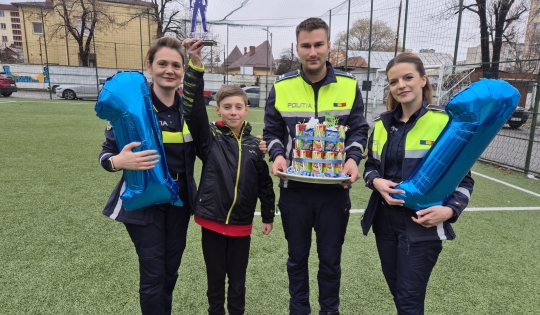 Stim că nu e o misiune uşoară, dar cu implicarea poliţiştilor Biroului Siguranţa Şcolară şi Biroului Rutier Craiova şi sprijinul ,,complicilor“, mama lui Pavel şi cadrele didactice ale Şcolii Gimnaziale Traian din municipiul Craiova, unde acesta studiază, am putut crea un eveniment plin de zâmbete şi emoţii constructive.