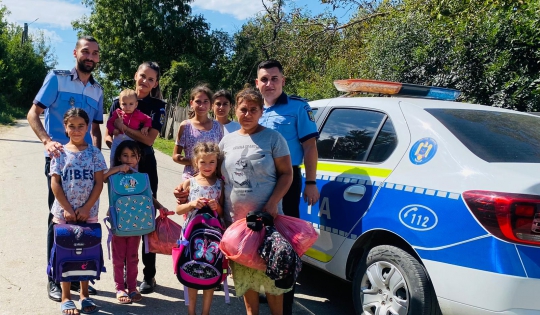 Mai sunt câteva ore până la primul clopoțel și nu puteau începe anul școlar fără să fie vizitați de prietenii polițiști.