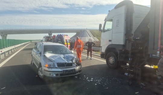 În urma impactului, autoturismul condus de tânărul de 32 de ani a fost proiectat într-un camion și un autoturism ce se aflau staționate pe banda 1.