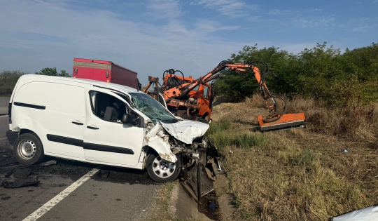 În urma impactului, autoutilitara a fost proiectată într-un autoturism condus de un bărbat, de 48 de ani, din județul Gorj.