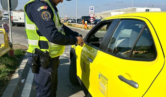 Polițiștii au depistat un bărbat care efectua activități în regim taxi, iar cu ocazia controlului s-a constatat faptul că ecusonul cu fotografia titularului nu se afla fizic la bordul autoturismului.