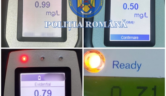 În jurul orei 16.30, polițiștii Secției 2 Poliție Craiova au depistat un bărbat de 42 de ani, din Craiova, în timp ce conducea un autoturism pe Bulevardul 1 Mai, din localitate, având o concentrație de 0,71 mg/l alcool pur în aerul expirat.