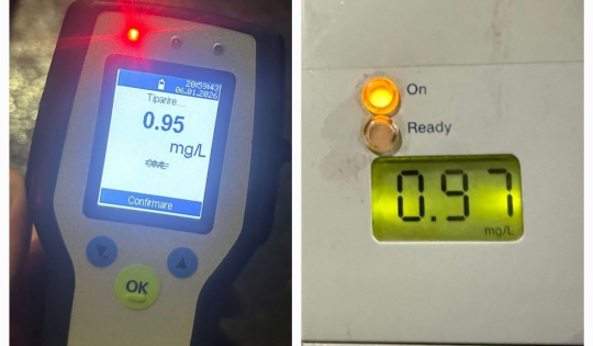 Întrucât prezenta halenă alcoolică, bărbatul a fost testat cu aparatul etilotest, rezultând o concentrație de 0.95 mg/l alcool pur în aerul expirat.